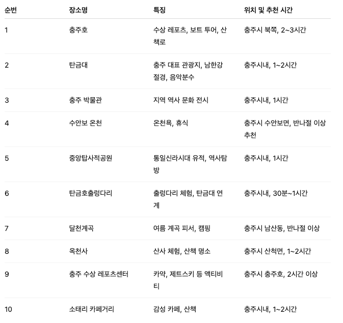 🗓 추천 일정: 충주 1박 2일 여행 코스