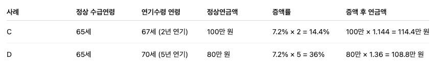 | 증액률 | 7.2% × 연기수령 연수 |