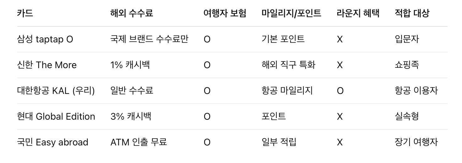 • ✅ 해외여행에 꼭 필요한 신용카드 선택 기준