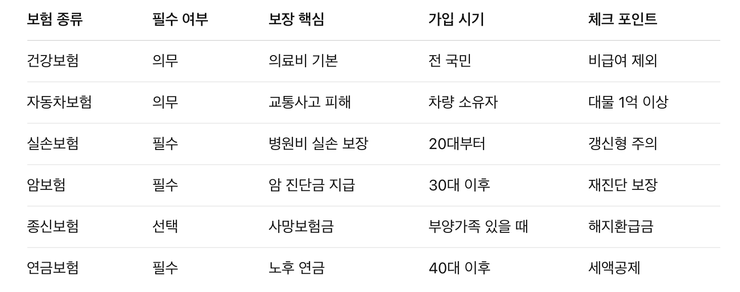 • ✅ 나이·직업·가족 상황에 따른 보험 우선순위