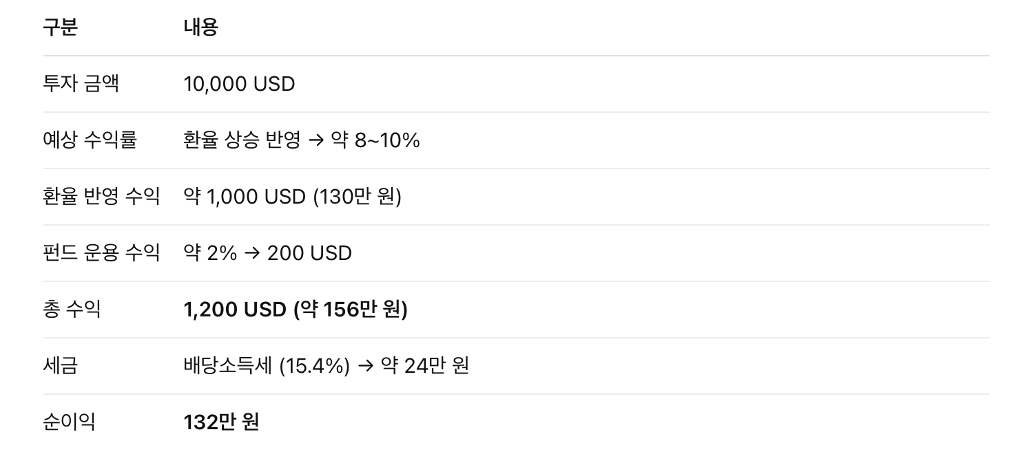 👉 단점 : 세금 복잡 / 환율·주식 동시 리스크